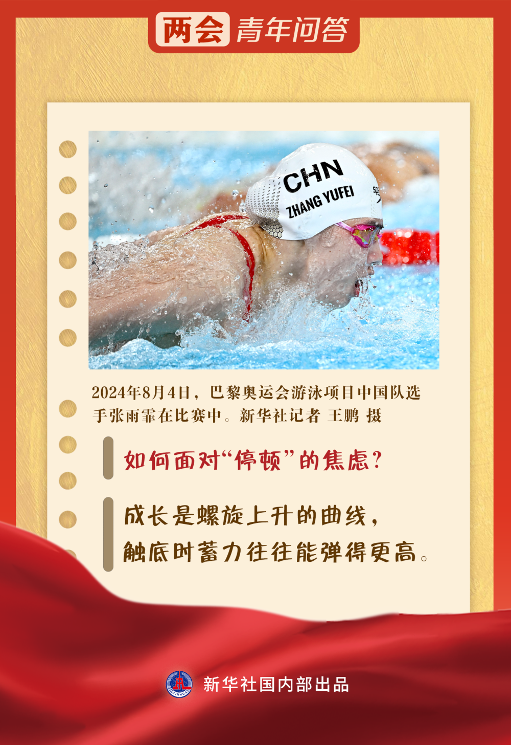 张雨霏:要坚执、不打消。面临窘境挑战,年青东谈主未必可能会夷犹纠结,但其实本色里谁不想突破?巴黎奥运会后,我有一阵儿很想“躺平”,可“躺”了两个星期后,仍是会粗豪起来作念荒芜念念的事,想让我方的东谈主生更好意思满。我想大宽绰年青东谈主亦然这种心态。