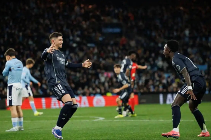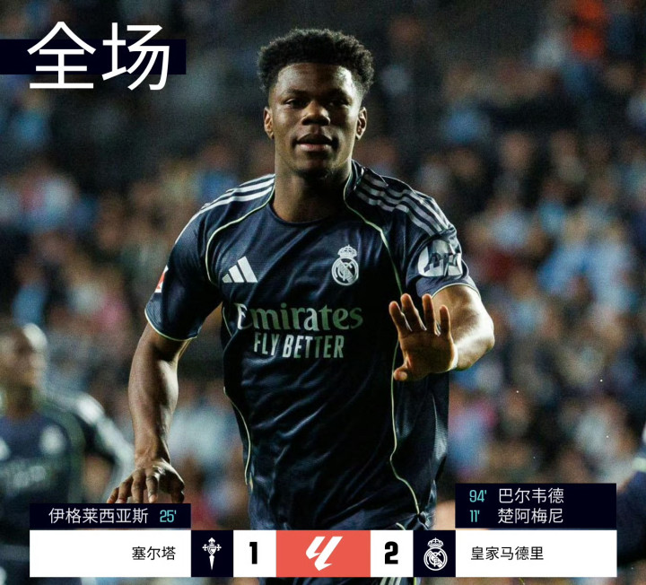 本场比赛的走势好事多磨:上半场第11分钟,楚阿梅尼禁区外抽射破门,为皇马拿下虚幻开局;第25分钟,伊格莱西亚斯接斯威德伯格助攻推射平直,帮塞尔塔速即扳平比分;下半场易边再战,第71分钟皇马得到的点球经VAR回看后,被判定楚阿梅尼推东谈主在先取消;比赛临了技能,补时第90+4分钟,队长巴尔韦德禁区边际的射门经折掷中计,献技绝杀。最终皇家马德里客场2-1打败塞尔塔,淹没了联赛2连败,同期把我方对阵塞尔塔的西甲客场连胜记录不息到了8场。