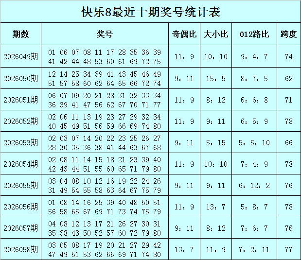 福彩风景8第2026058期开奖记忆:03 05 08 17 19 20 21 27 29 42 47 49 51 53 62 66 69 71 74 802024美洲杯买球体育信息,其中奖号奇偶比开出13:7,大小比开出11:9,012路比开出7:2:11,和值为813,跨度为77。