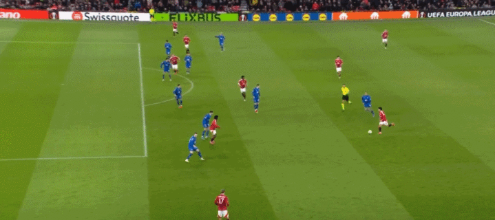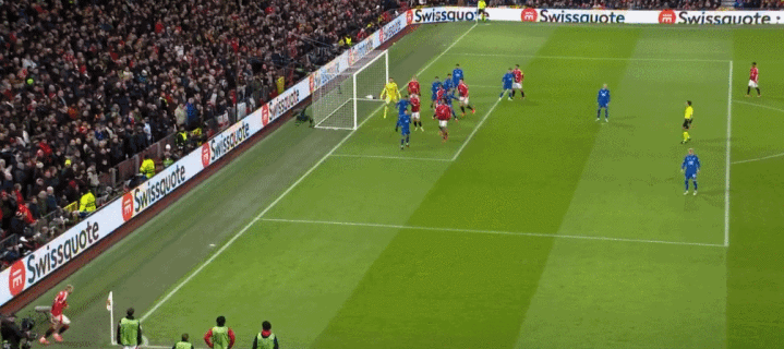 第90+2分钟,利桑德罗插上,左脚45°精确传中,B费小禁区前推射完成绝杀,曼联2比1流浪者。