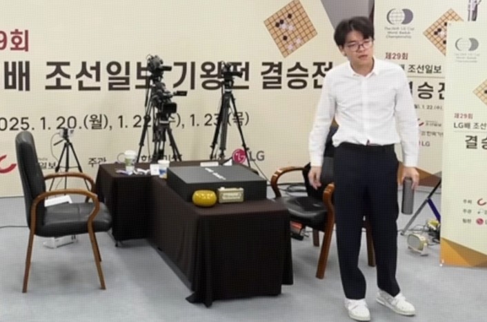 北京期间1月23日,LG杯决赛三番棋决胜局,博弈中再次出现争议时刻,,柯洁提子的时候,边际子拨棋没拨到棋盒里,导致有一枚白子放在了棋盖外面,就在敌手卞相壹念念考的时候,主裁判强行介入,暂停了比赛。