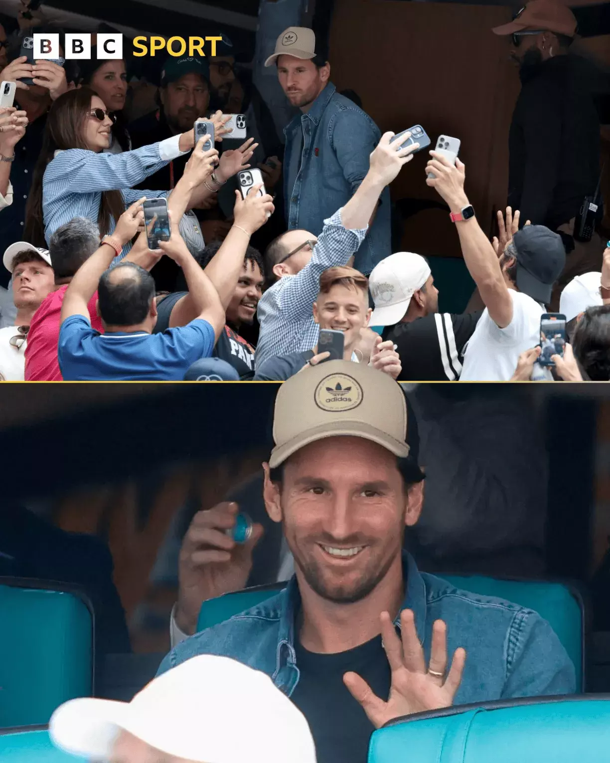 为迈阿密国外效能的梅西也莫得错过这场精彩的比赛,他出当今了看台上。当他走入球场的短暂,多名他身边座位的球迷堕入怡悦,纷繁提起手机拍摄梅西或与之合影。